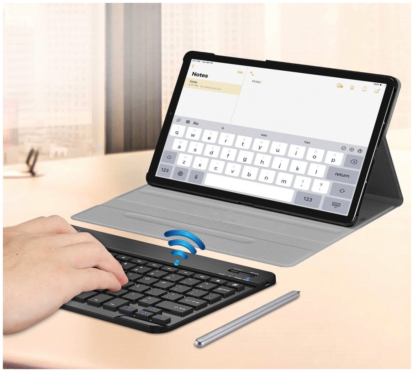 Чехол-клавиатура MyPads для планшетов с диагональю 9.6/ 9.7/ 10.1/ 10.2/ 10.5/ 10.8 дюйма съёмная беспроводная Bluetooth в комплекте c кожаным че.