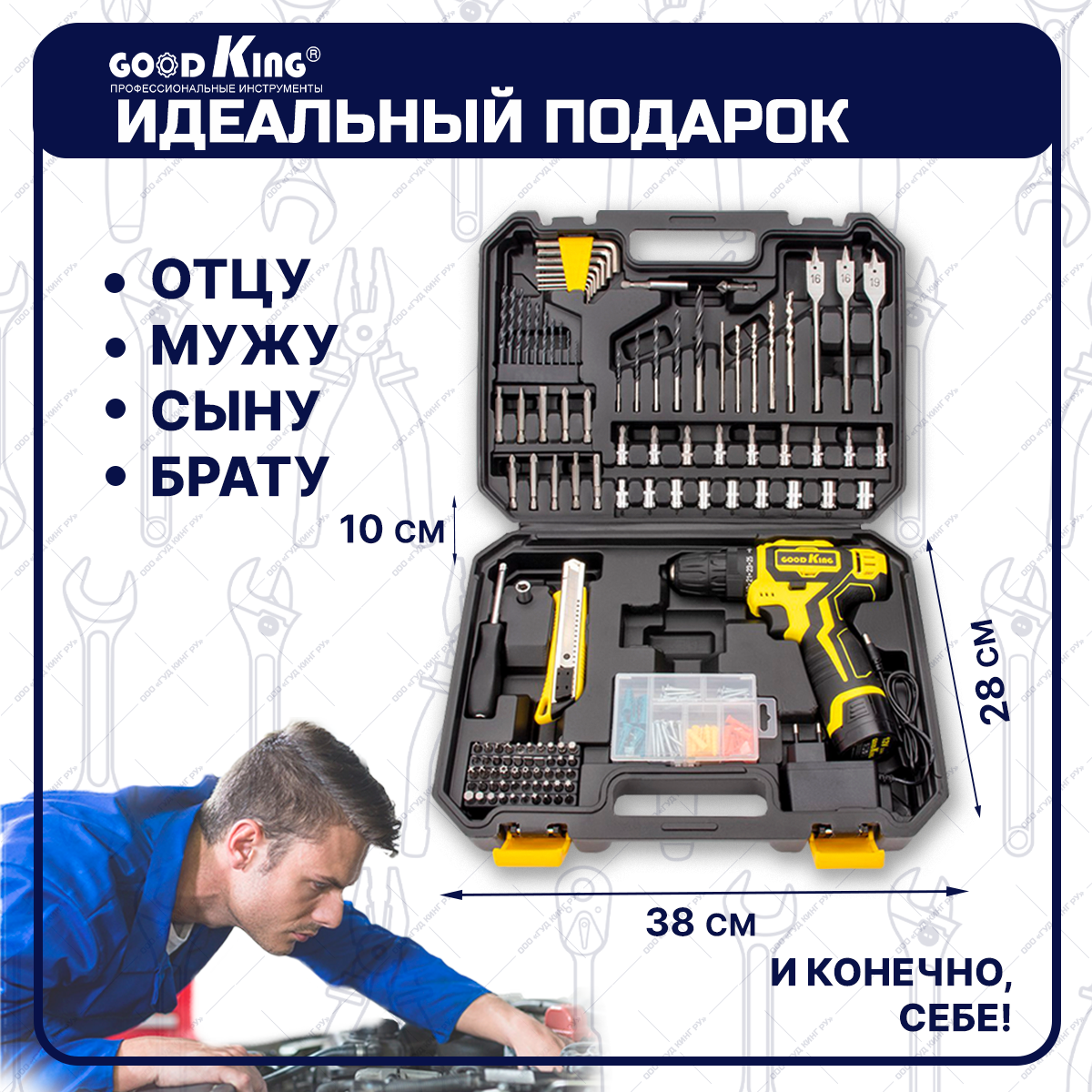 Отзывы на Дрель шуруповерт GOODKING, аккумуляторная, с набором инструментов 193 предмета
