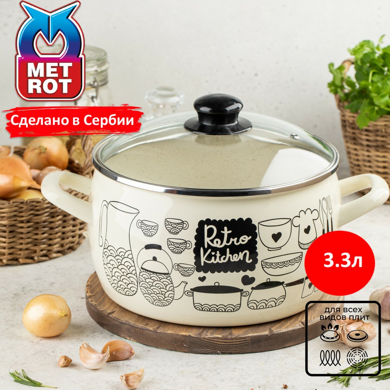 Кастрюля эмалированная из стали Metrot / Метрот Ретро, объемом 3.3л со стеклянной крышкой, для всех видов плит / посуда для кухни 2 865 ₽