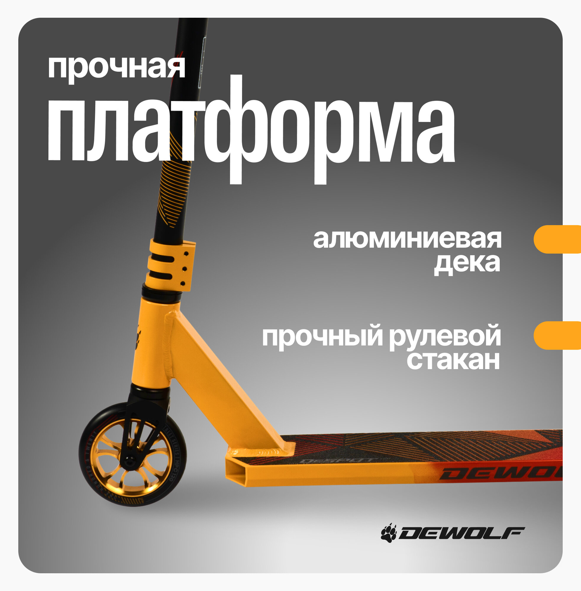 Самокат трюковой двухколесный городской DEWOLF DESPOT 120, для детей, подростков и взрослых, вращение руля 360, усиленный руль и дека, цвет оранжевый 9 990 ₽