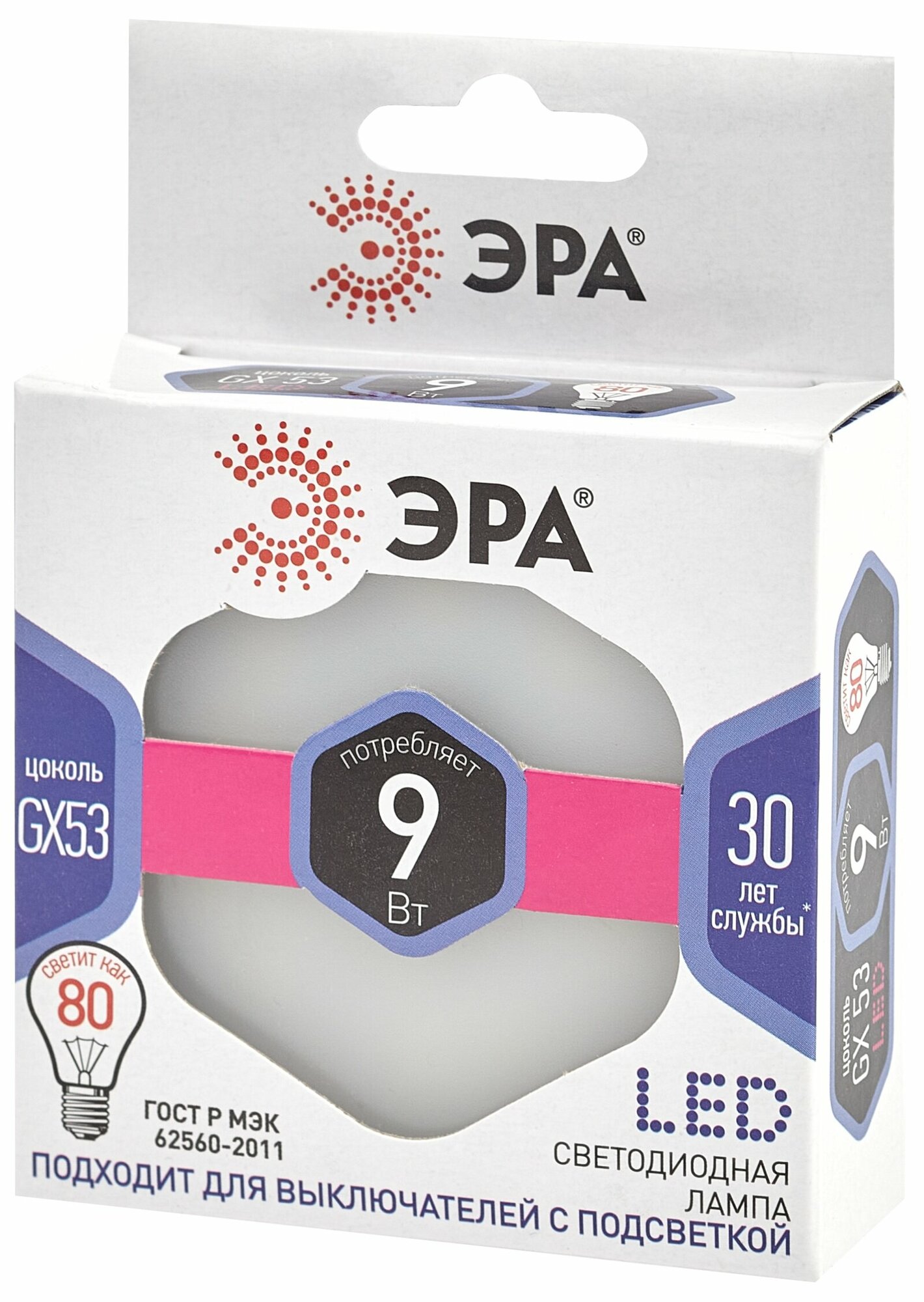 Отзывы на Лампочка светодиодная ЭРА LED GX-9W-860-GX53 6000K таблетка (закрытая колба) 9 Вт