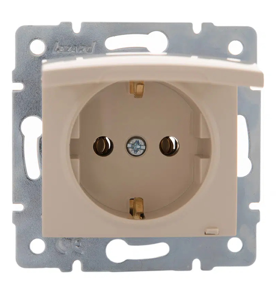 Розетка силовая штепсельная Lezard / Лезард Karina ПБТ, кремовый 1-местная c заземляющими контактами и крышкой, 707-0388-123B / электрооборудование информация: