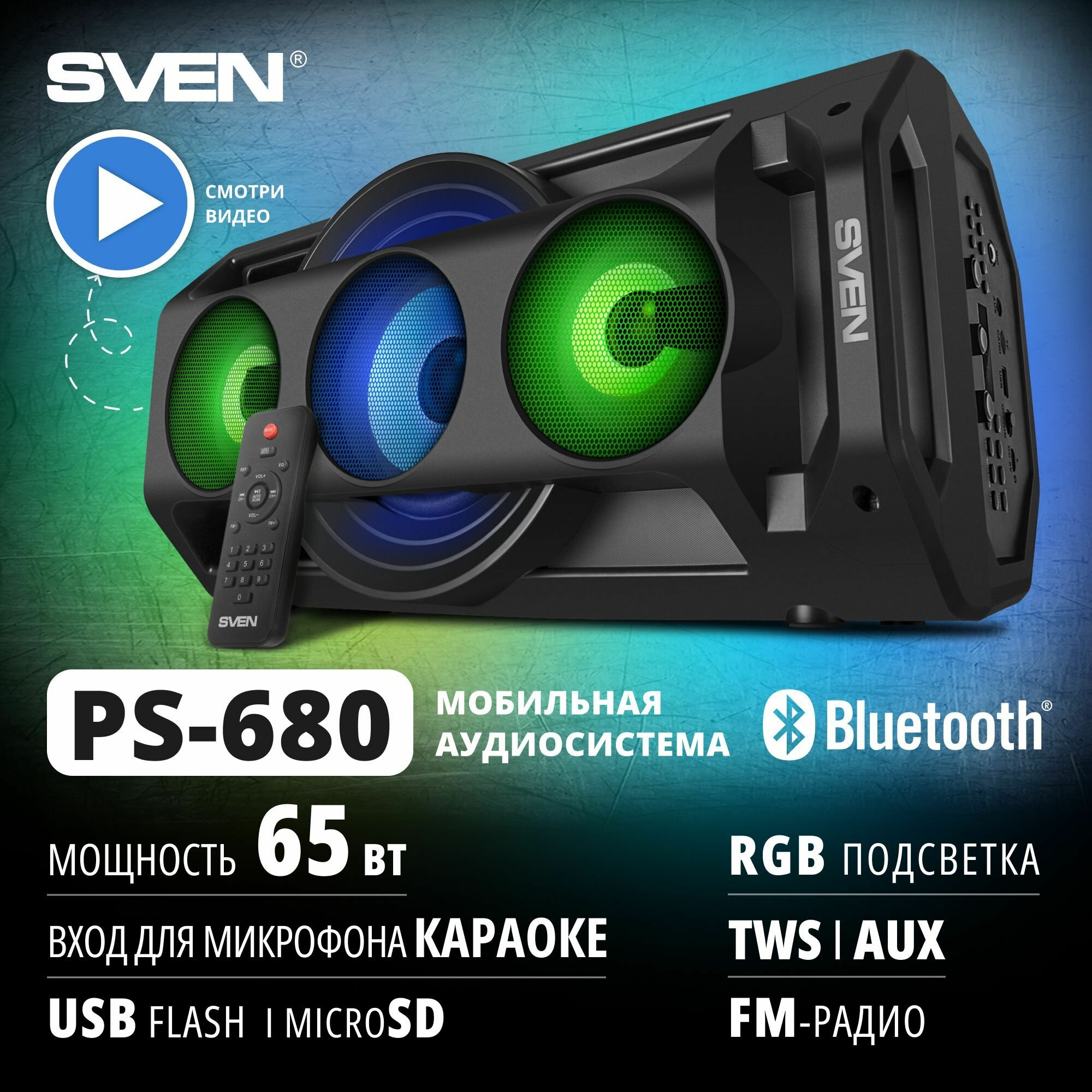 Отзывы на Sven Колонка порт. АС PS-680 черный 65W 1.0 BT 4400mAh SV-020187