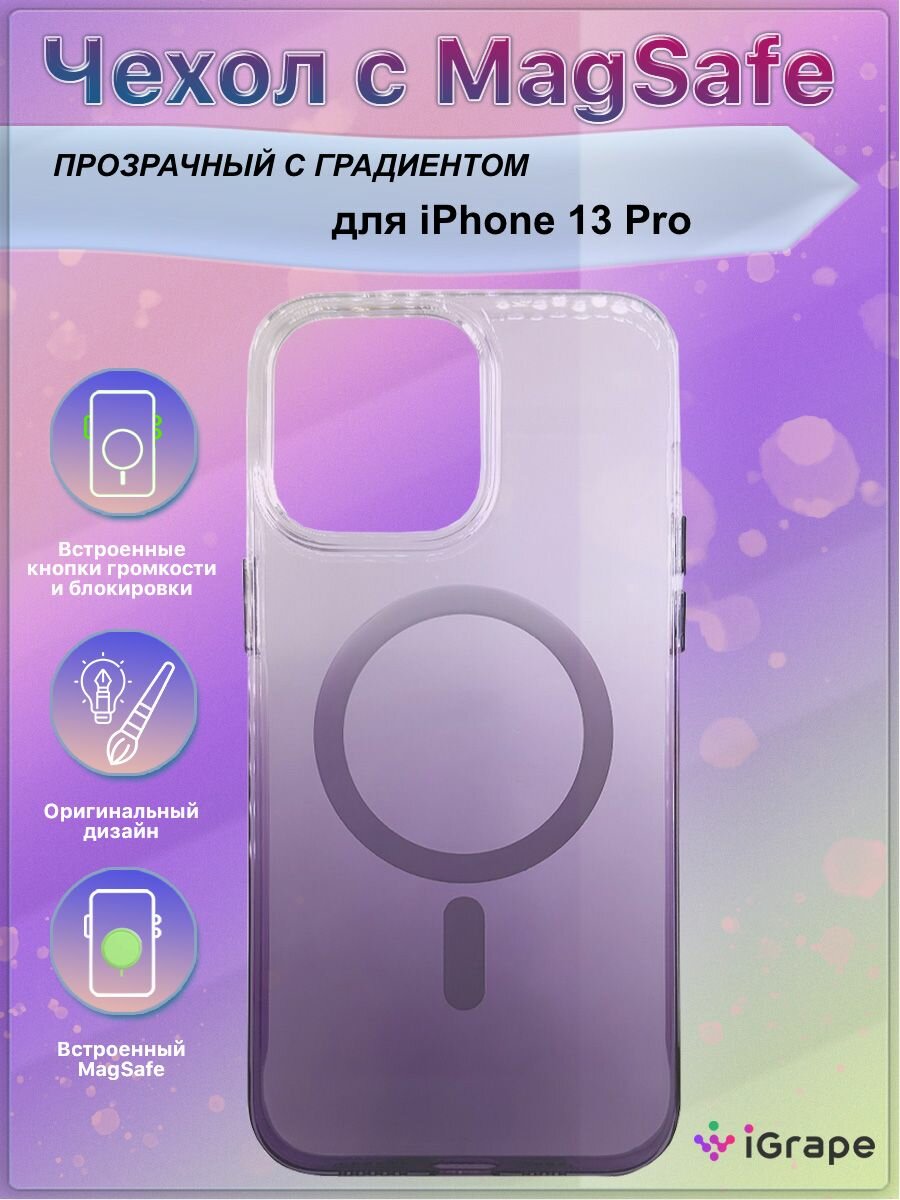 Прозрачный чехол с MagSafe и градиентом для iPhone 13 Pro, iGrape (Фиолетовый) / чехол на айфон 13 про информация: