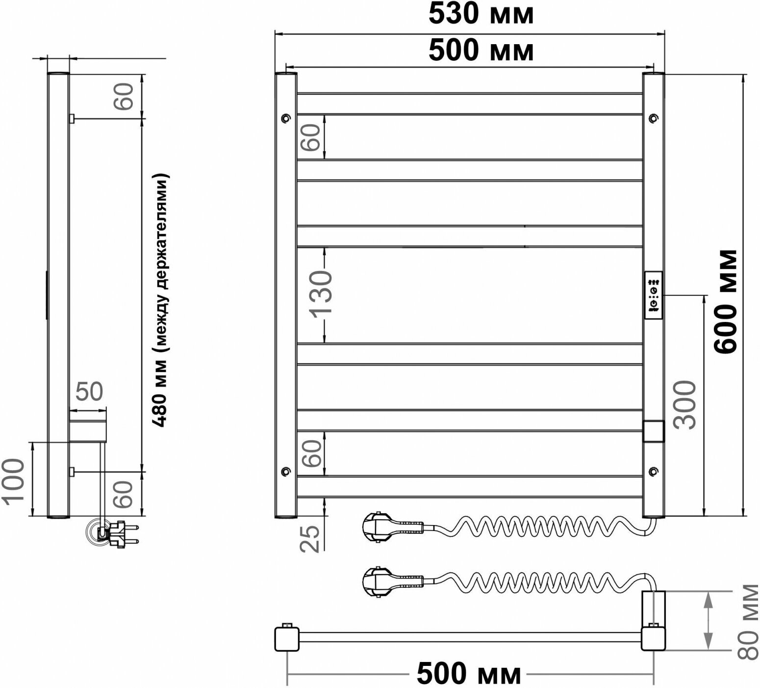 Полотенцесушитель электрический Маргроид В10 30х80, таймер, черный матовый