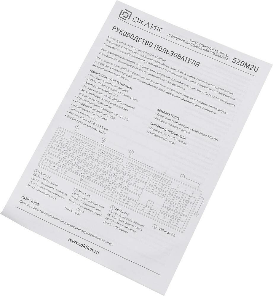 Oklick Клавиатура 520M2U черный черный USB slim Multimedia 1061587