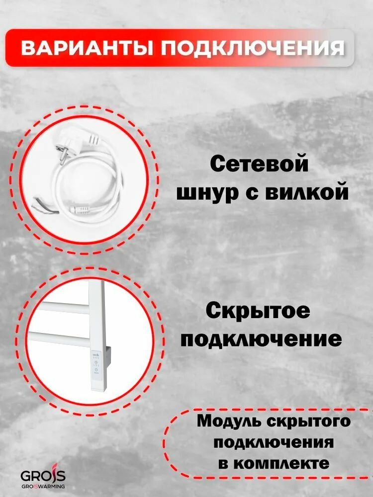 Полотенцесушитель электрический Grois GR112 530х800 П8 9005 подключение справа и слева