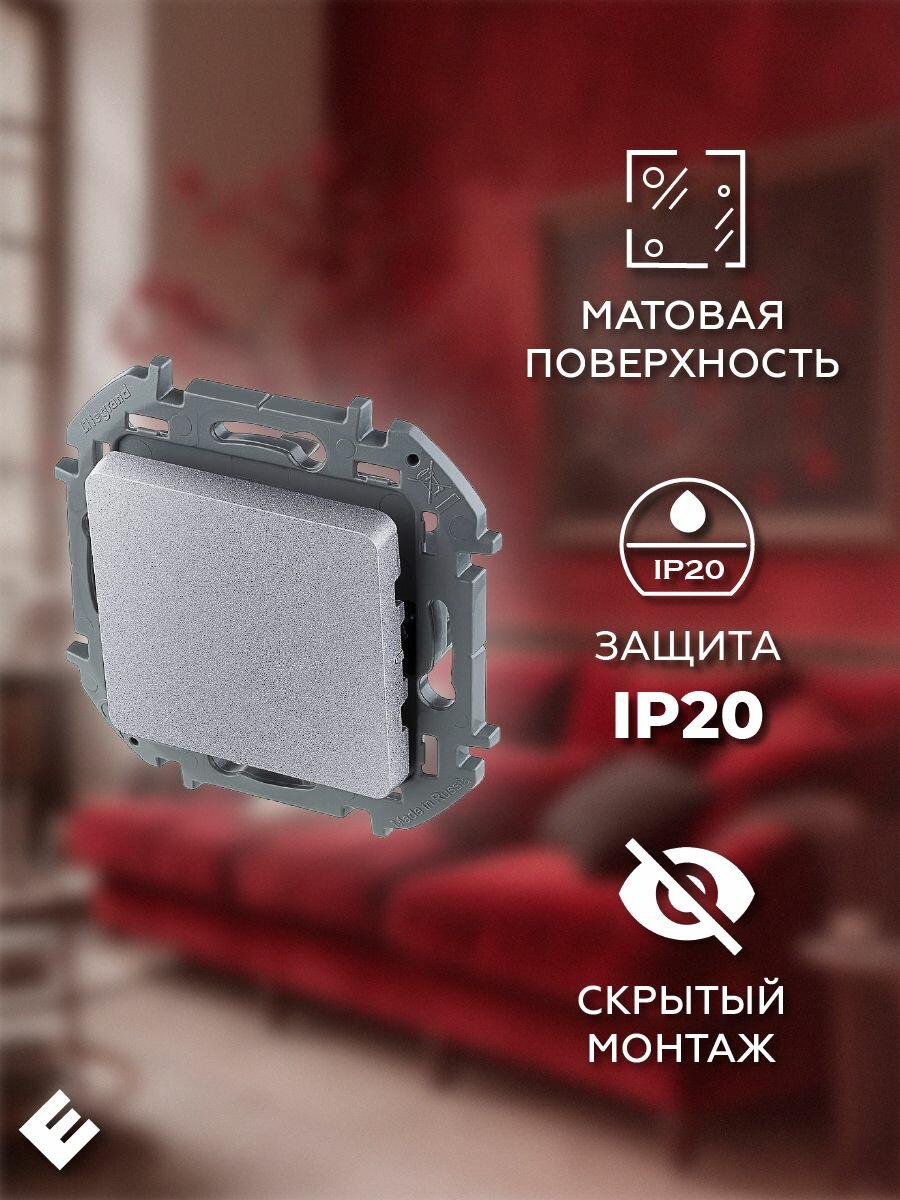 Переключатель промежуточный одноклавишный Legrand Inspiria для скрытого монтажа, цвет "Алюминий", номинальный ток 10 А, напряжение ~250В