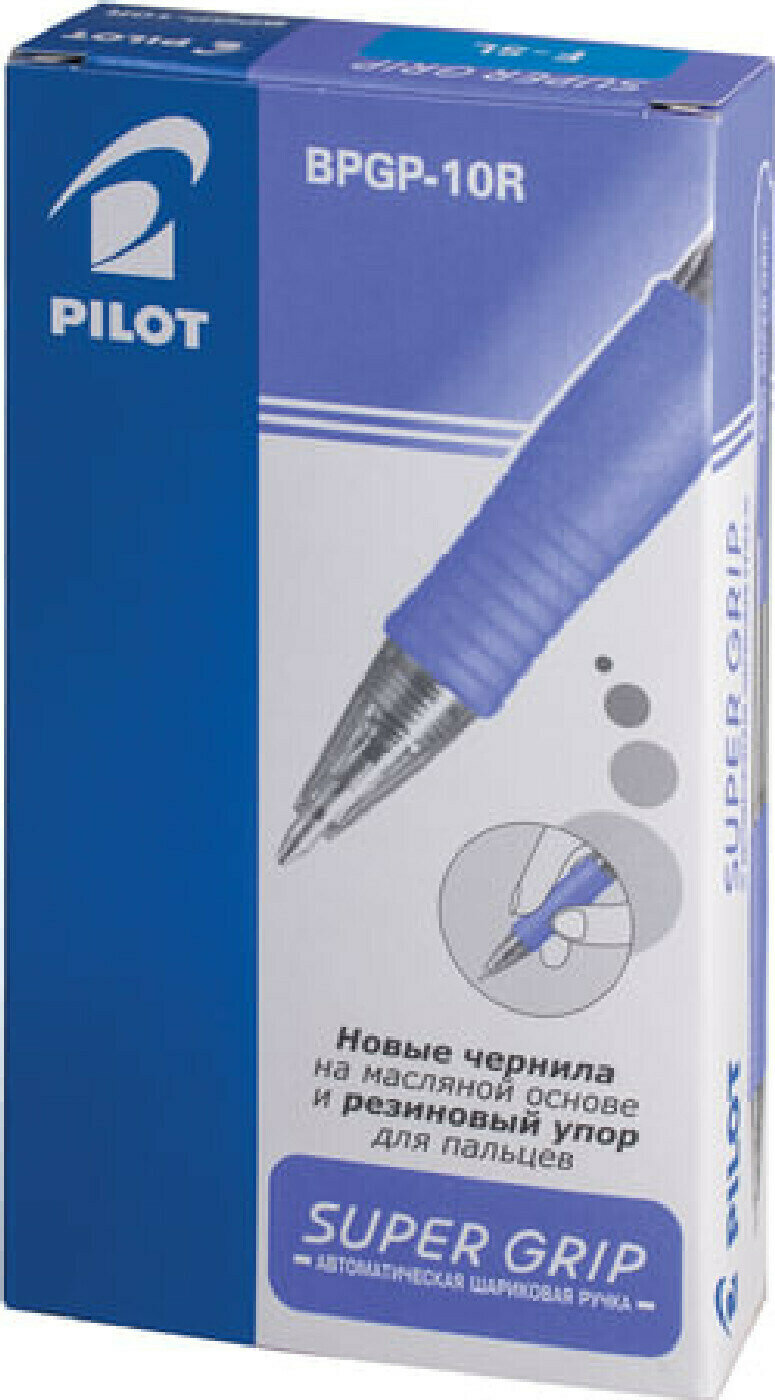 Отзывы на Набор ручек Ручка шариковая масляная автоматическая с грипом PILOT "Super Grip", синяя, голубые детали, узел 0,7 мм, линия письма 0,32 мм, BPGP-10R-F, 12 штук в упаковке