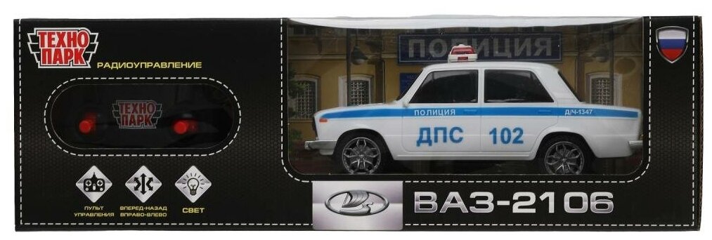 10 цен на Модель машины Технопарк ВАЗ-2106 Полиция, белая, на радиоуправлении, свет VАZ2106-18L-РОL-WН