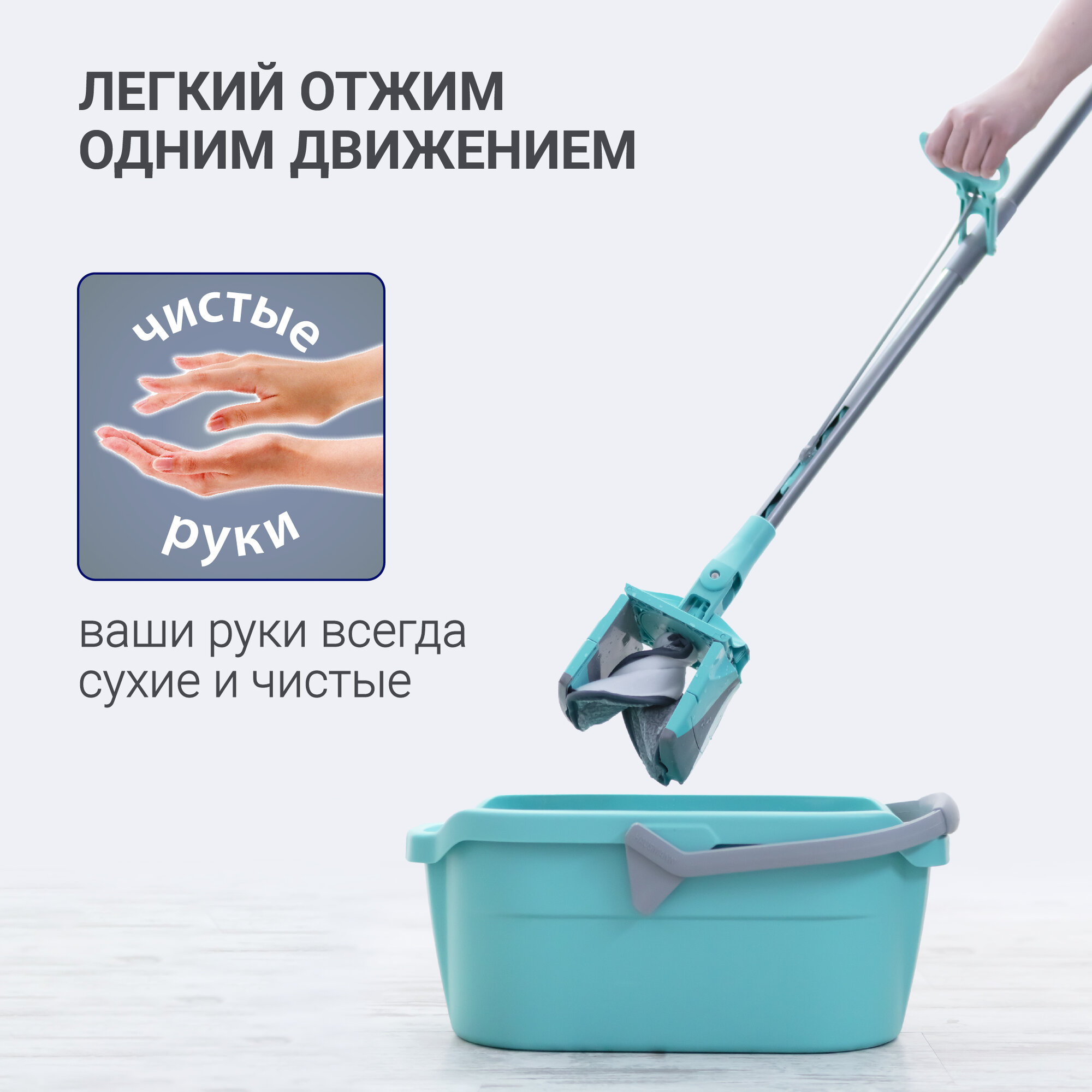 Швабра Hausmann HM-67 CARE CLEAN V.2 для влажной уборки пола с механизмом отжима информация: