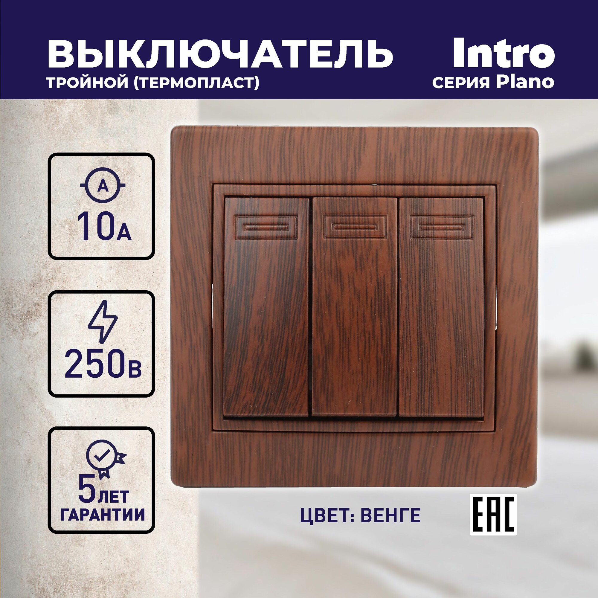 Выключатель Intro Plano 1-106-10 тройной 10А-250В IP20 СУ венге 416 ₽