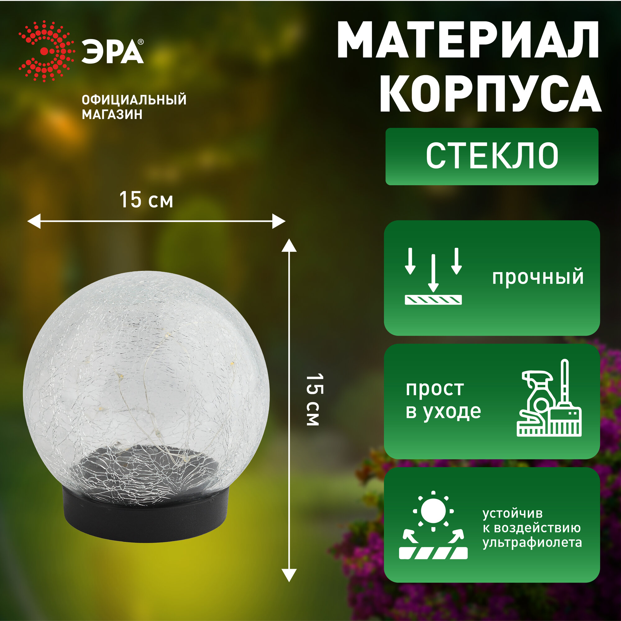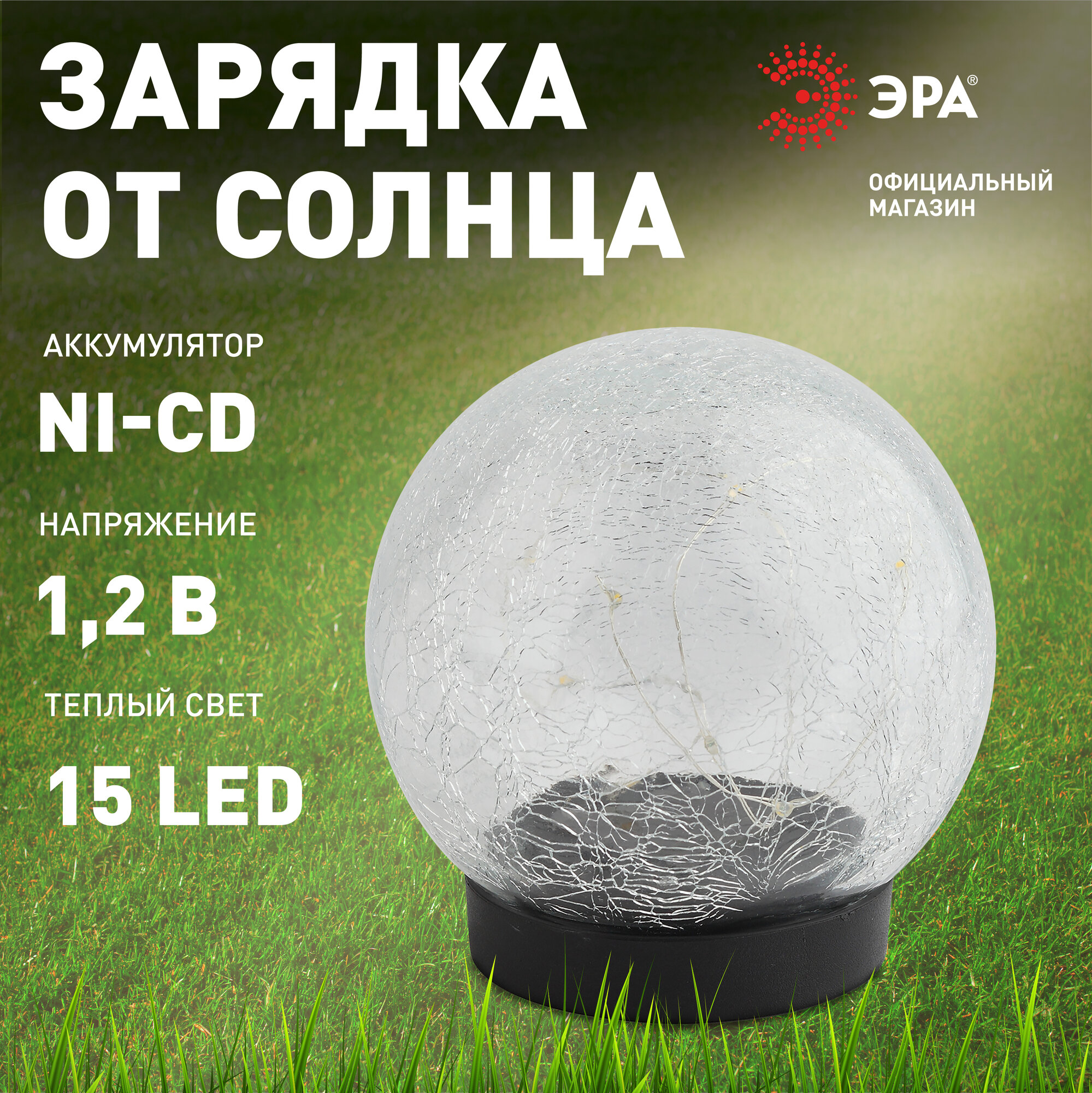 ЭРА ERASF01224 Садовый светильник Шар на солнечной батарее, 15 LED 15 Б0044232 .