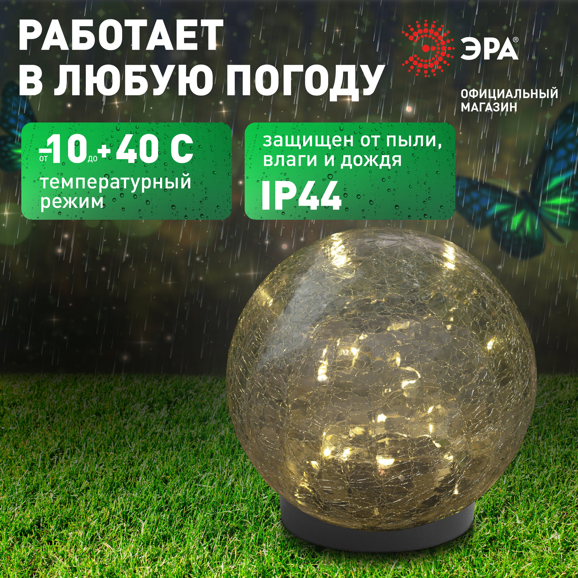 Отзывы на Уличный светодиодный светильник ERASF012-24 шар на солнечных батареях 15 LED IP44 15 см
