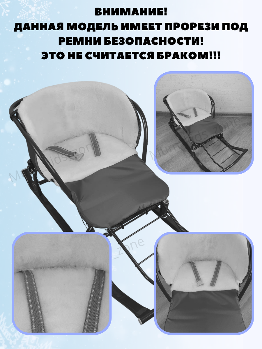 Матрасик для санок меховой 3 в 1 Снегопад на черном бок серый мех белый 1 750 ₽