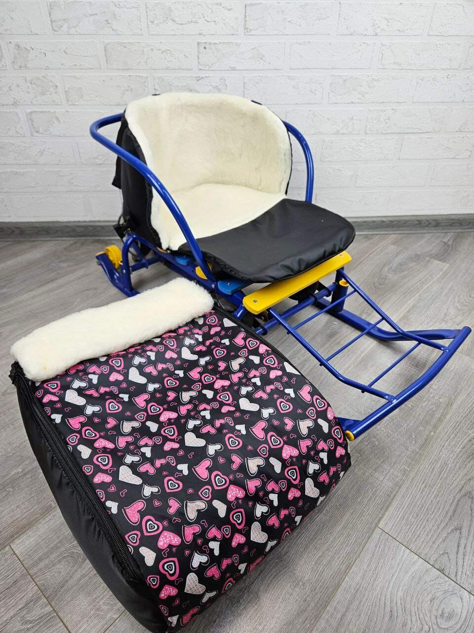 Отзывы на Матрасик для санок меховой 3 в 1 Сердечки на черном бок черный мех белый