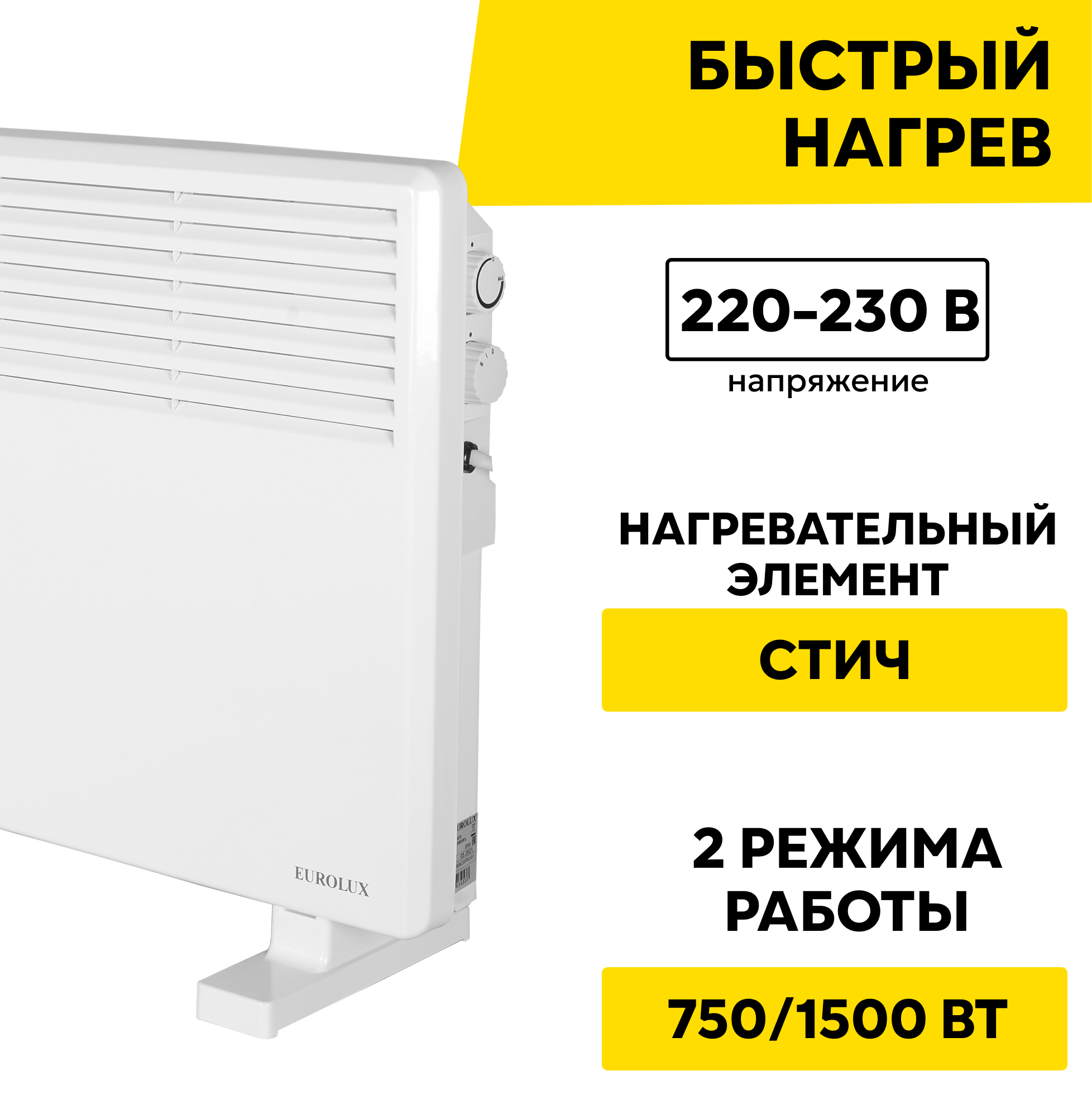 Конвектор ОК-EU-1500CH Eurolux, 1.5 кВт, до 15м2, стич информация: