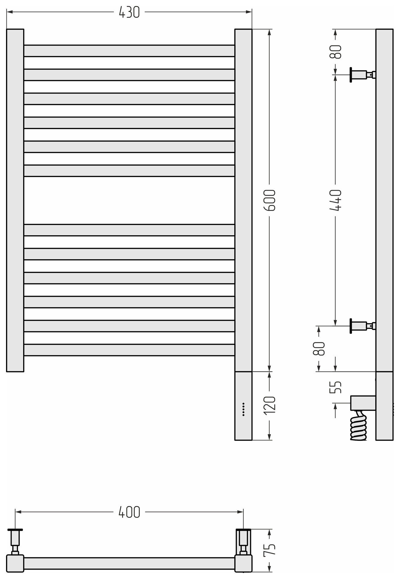 Электрический полотенцесушитель Сунержа Богема 3.0 прямая 600x400 ЛТЭН