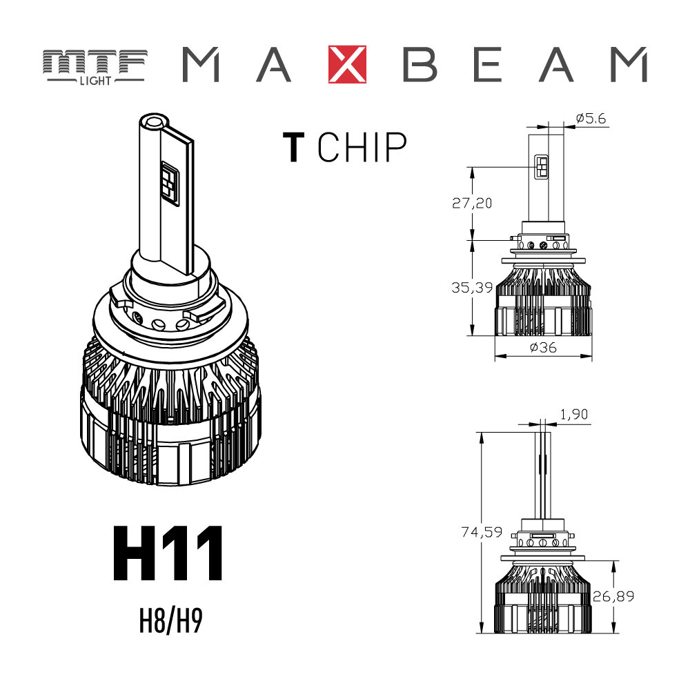 Светодиодные лампы MTF light MaxBeam Can Bus H11, H9 55W 5000 Lm 6000K (2 лампы) информация: