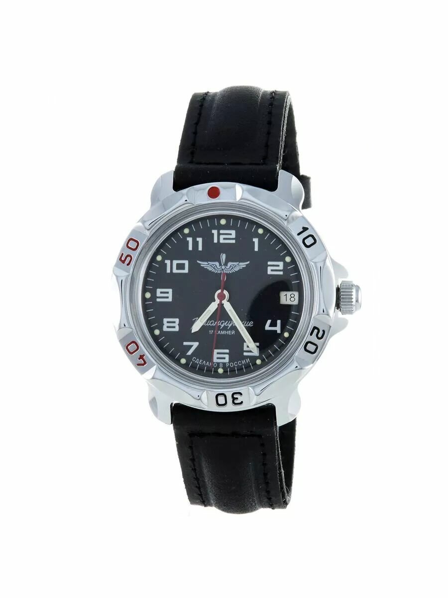 Мужские наручные часы Восток Командирские 53925Б-classic, натуральная кожа, черный