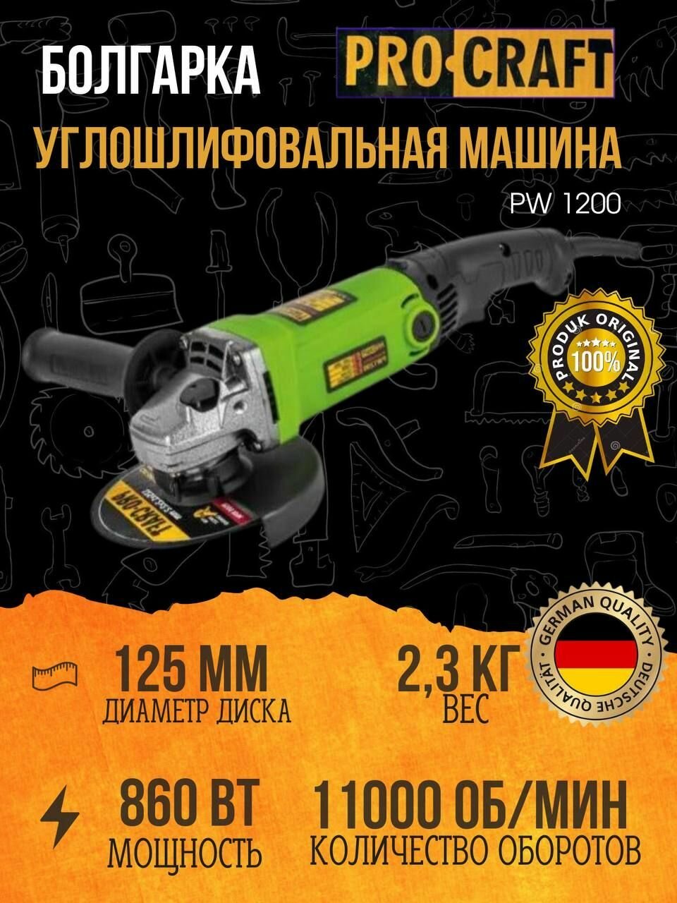 Машина углошлифовальная Pro-Craft Professional PW-1200. 860Вт. 125 диск. информация: