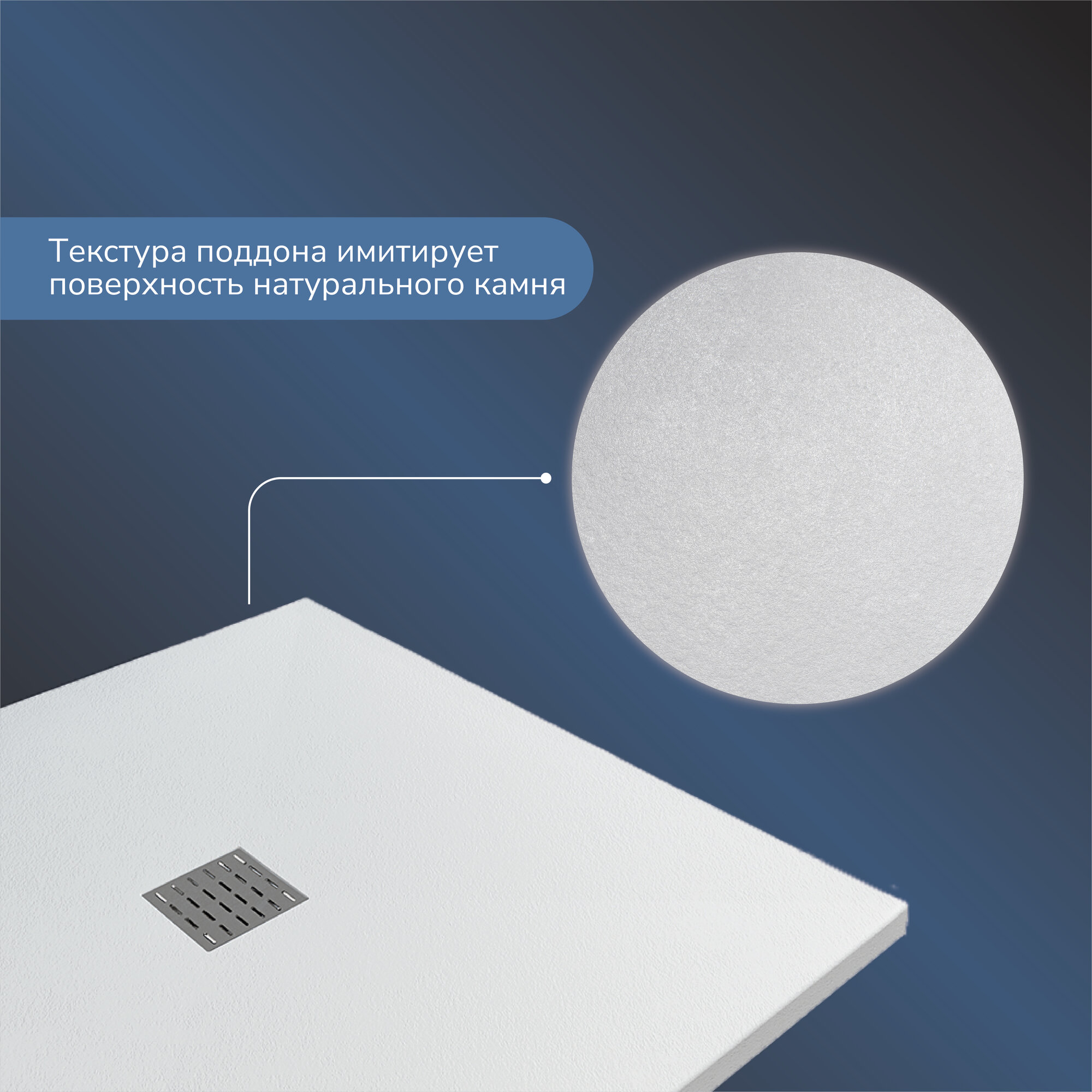 Поддон для душа 100х100 см., Ulitka Flow белый, литьевой мрамор информация: