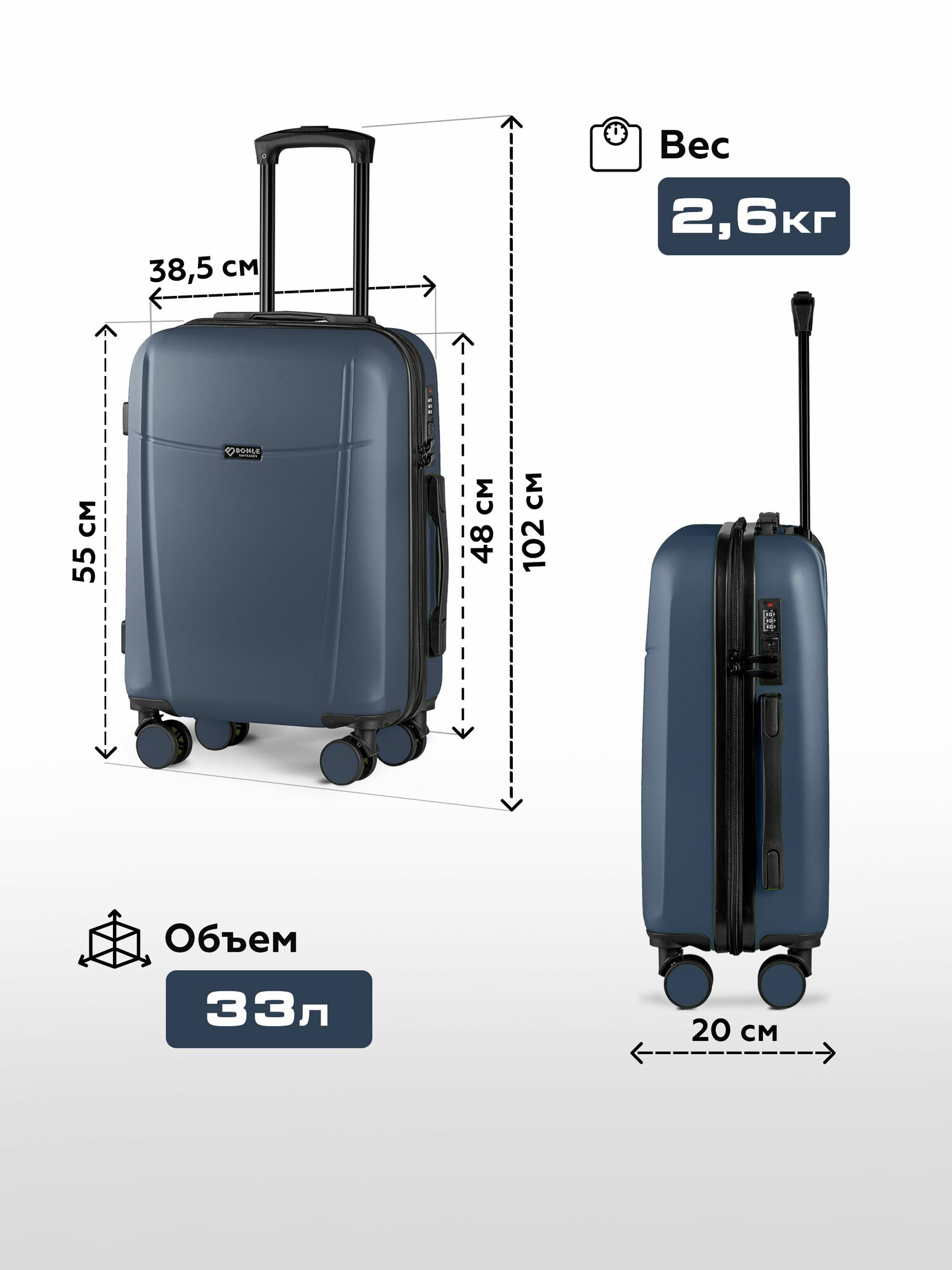 Чемодан на колесах ручная кладь темно-серый Bonle, премиум ABS-пластик, размер S, 55 см, 33 л, дорожный, маленький, детский 7 350 ₽