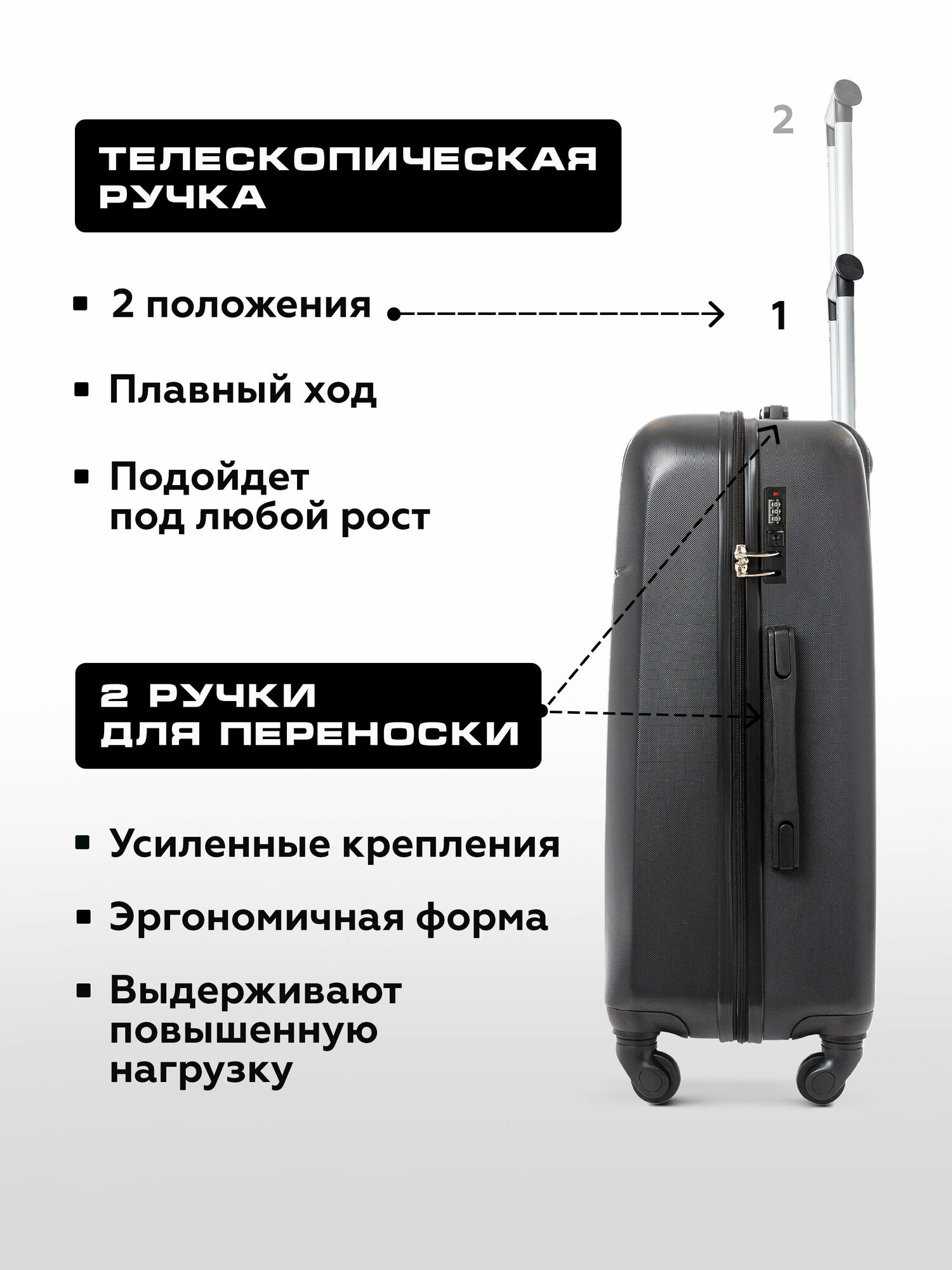 Чемодан на колесах ручная кладь черный Bonle, премиум ABS-пластик, размер S, 55 см, 33 л, дорожный, маленький, детский 7 350 ₽