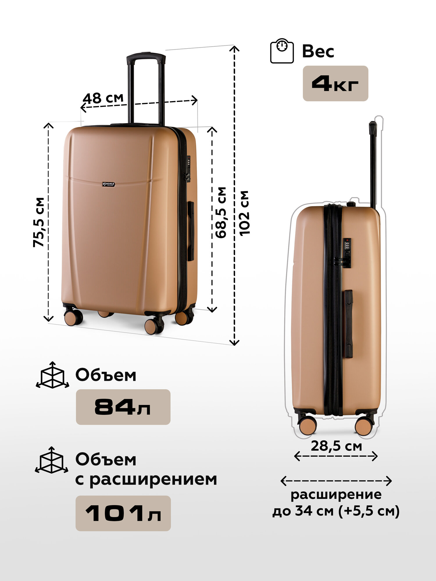 Чемодан Bonle, премиум ABS-пластик, Тасмания, размер L, 75,5 см, 101 л, большой дорожный, золотистый, Золотистый 7 980 ₽