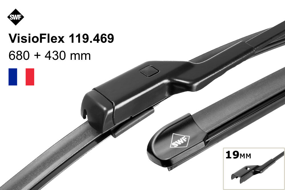 SWF 119469 (119469) комплект щеток стеклоочистителя visioflex бескаркасных 650 / 26+650 / 26 (боковой зажим)
