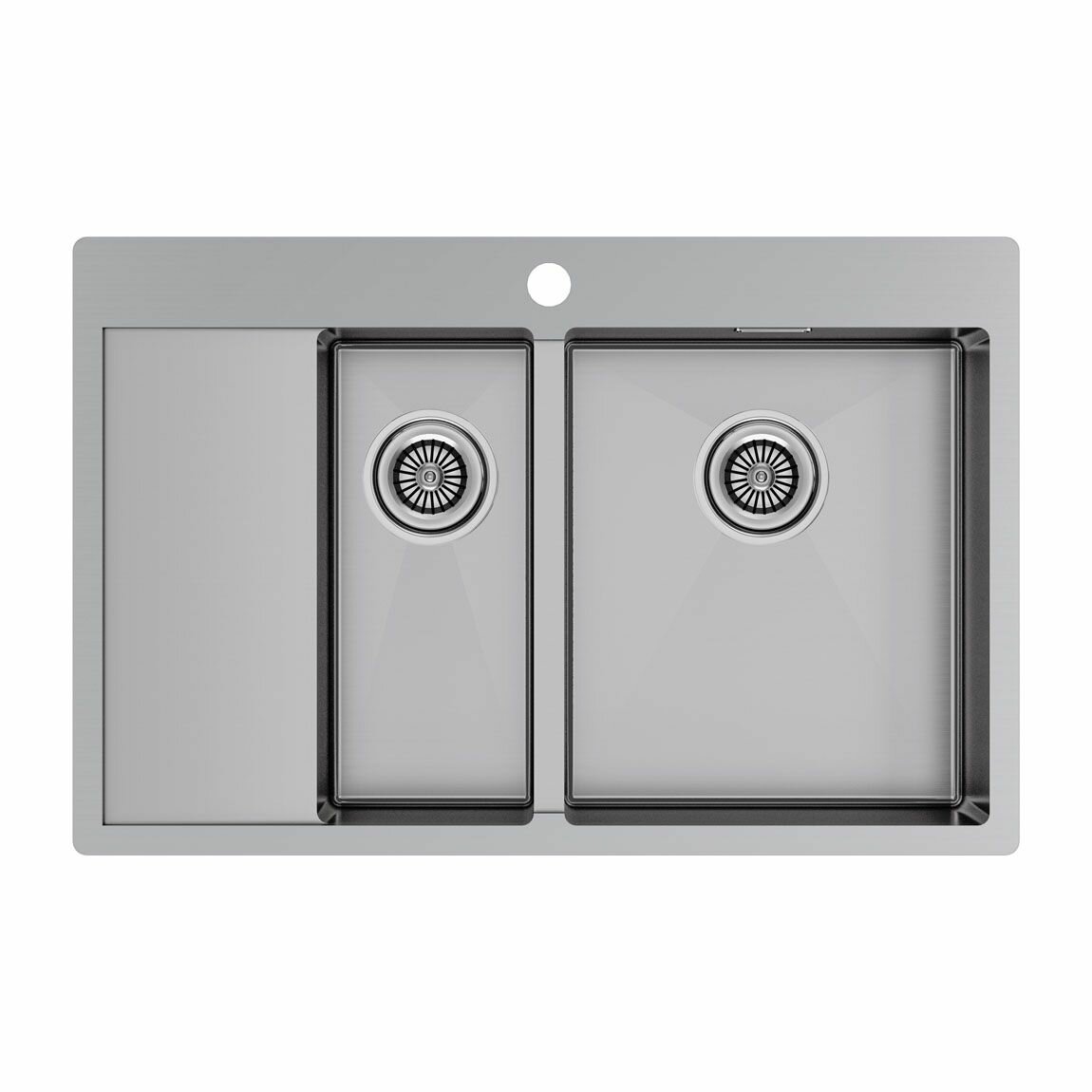 Кухонная мойка из нержавеющей стали Paulmark KRONER 78/2SF, 780х510 мм, мойка слева, отверстие под смеситель, врезная / вровень со столешницей, цвет брашированная сталь 35 900 ₽
