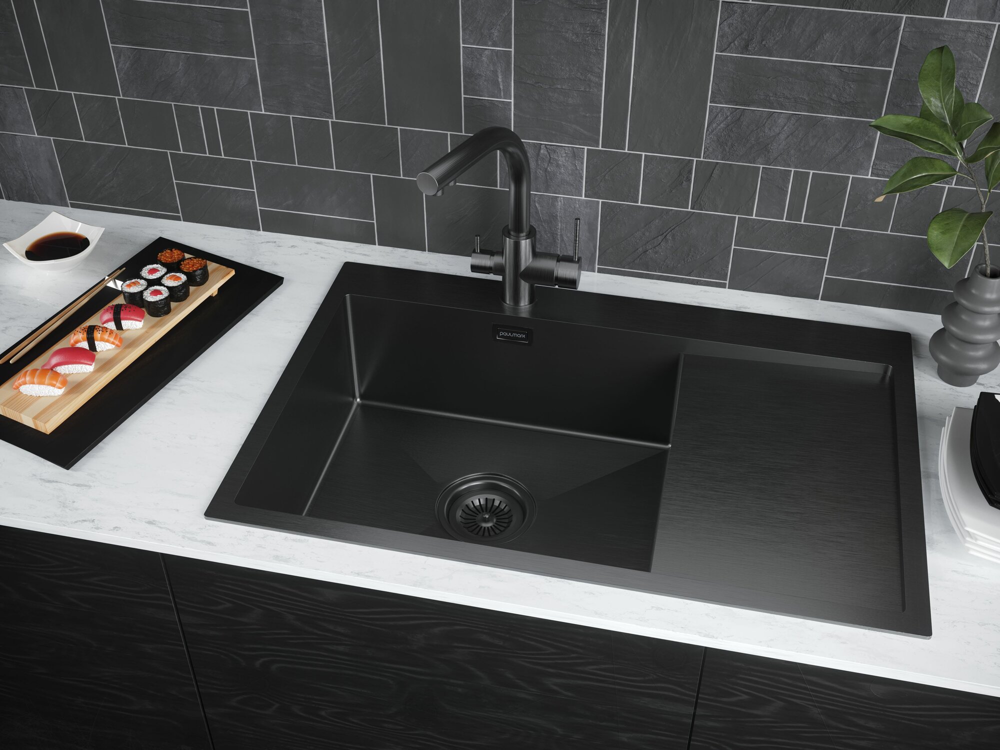 10 цен на Мойка для кухни из нержавеющей стали AISI304 Paulmark VELTEN 78F, 780х510 мм, мойка слева, PVD покрытие, отверстие под смеситель, врезная / вровень со столешницей, цвет вороненая сталь