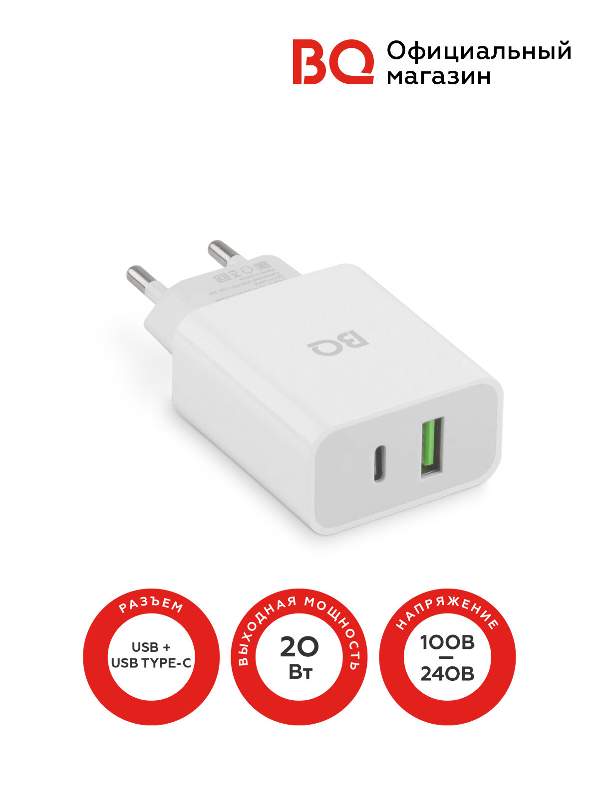 Сетевое зарядное устройство BQ Charger 20W2A01 /2 порта Type-C + USB /белый информация: