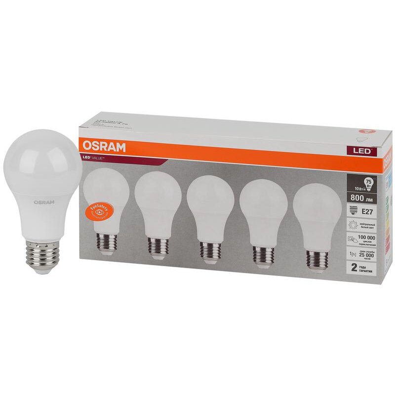 Отзывы на Лампа светодиодная LED Value LVCLA75 10SW/840 230В E27 2х5 RU (уп.5шт), OSRAM 4058075577749 (1 упак)