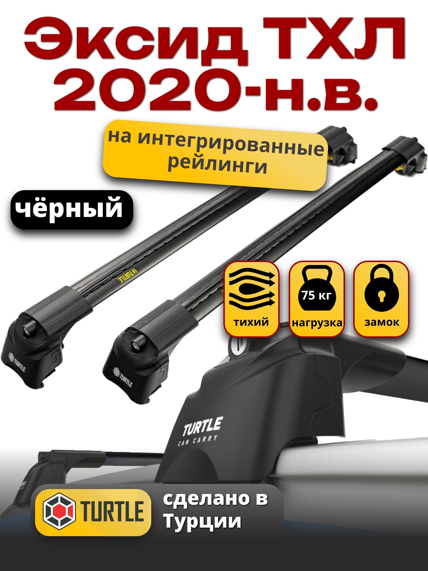 Багажник на крышу Эксид ТХЛ 2020-2022 на интегрированные рейлинги, черный, Turtle Air-2 информация: