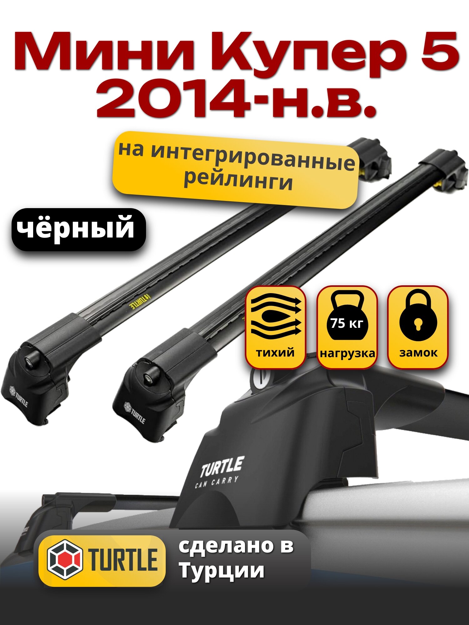 Отзывы на Багажник на крышу Мини Купер 5 2014-2024 на интегрированные рейлинги, черный, Turtle Air-2