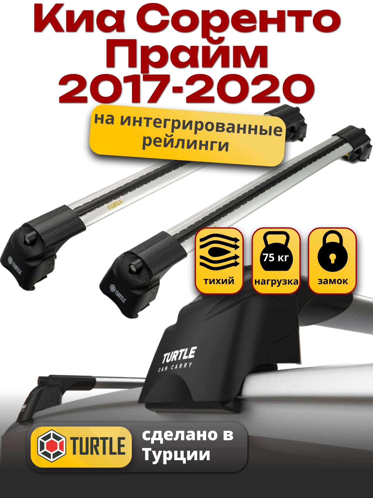Багажник на крышу Киа Соренто Прайм 2017-2020 на интегрированные рейлинги, Turtle Air-2 информация: