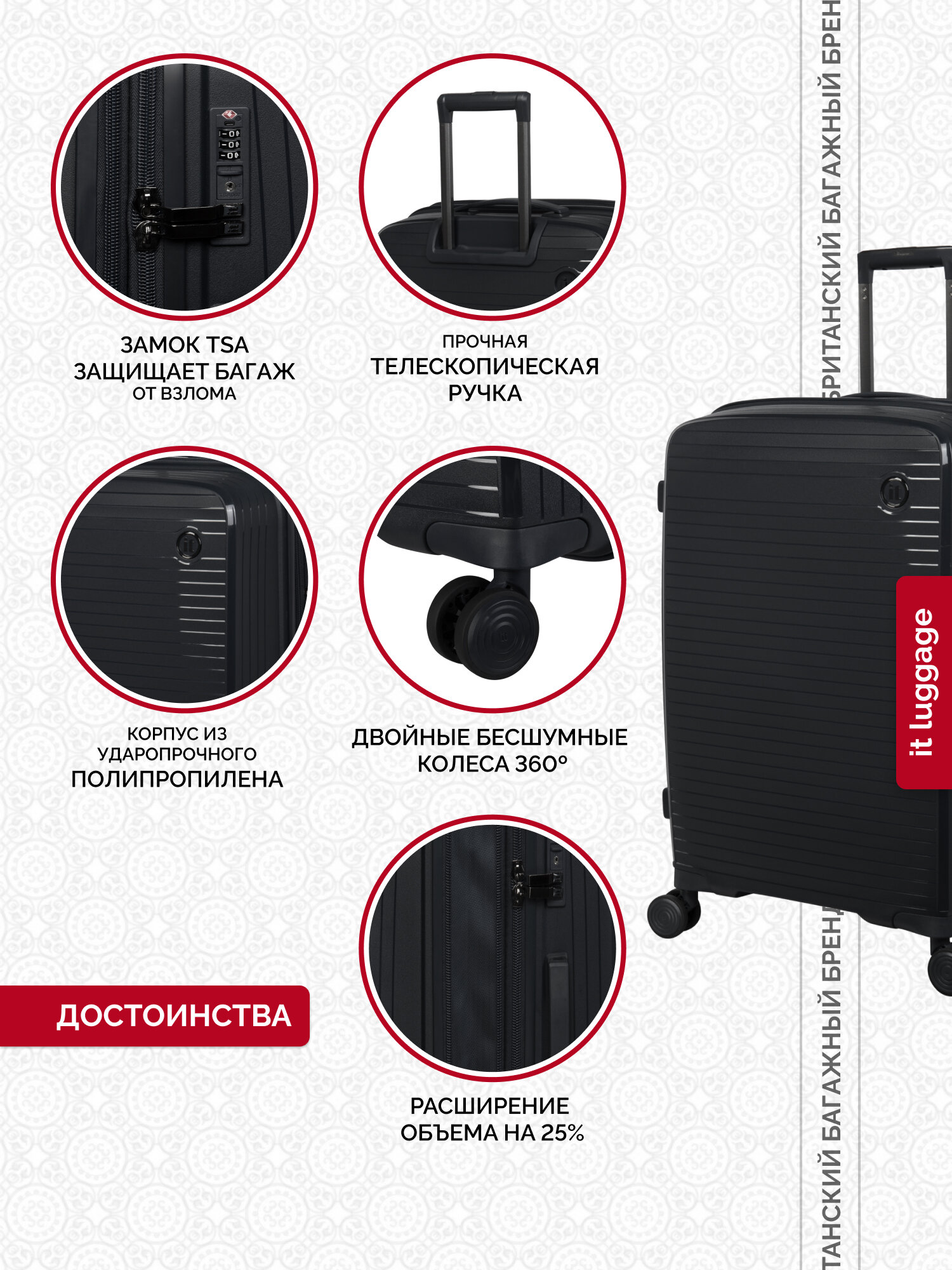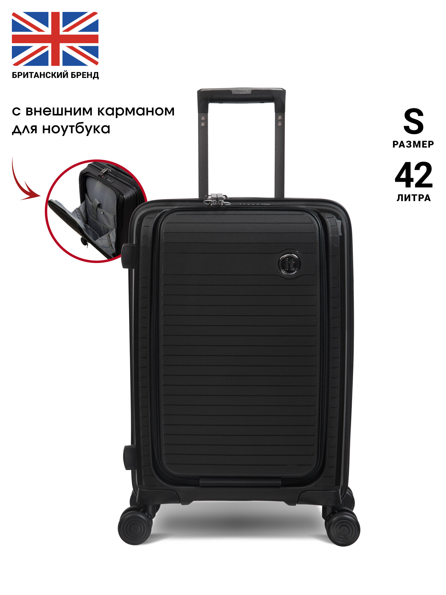 Чемодан на колесах it luggage/маленький размер S-ручная кладь/57л/полипропилен увеличение объема