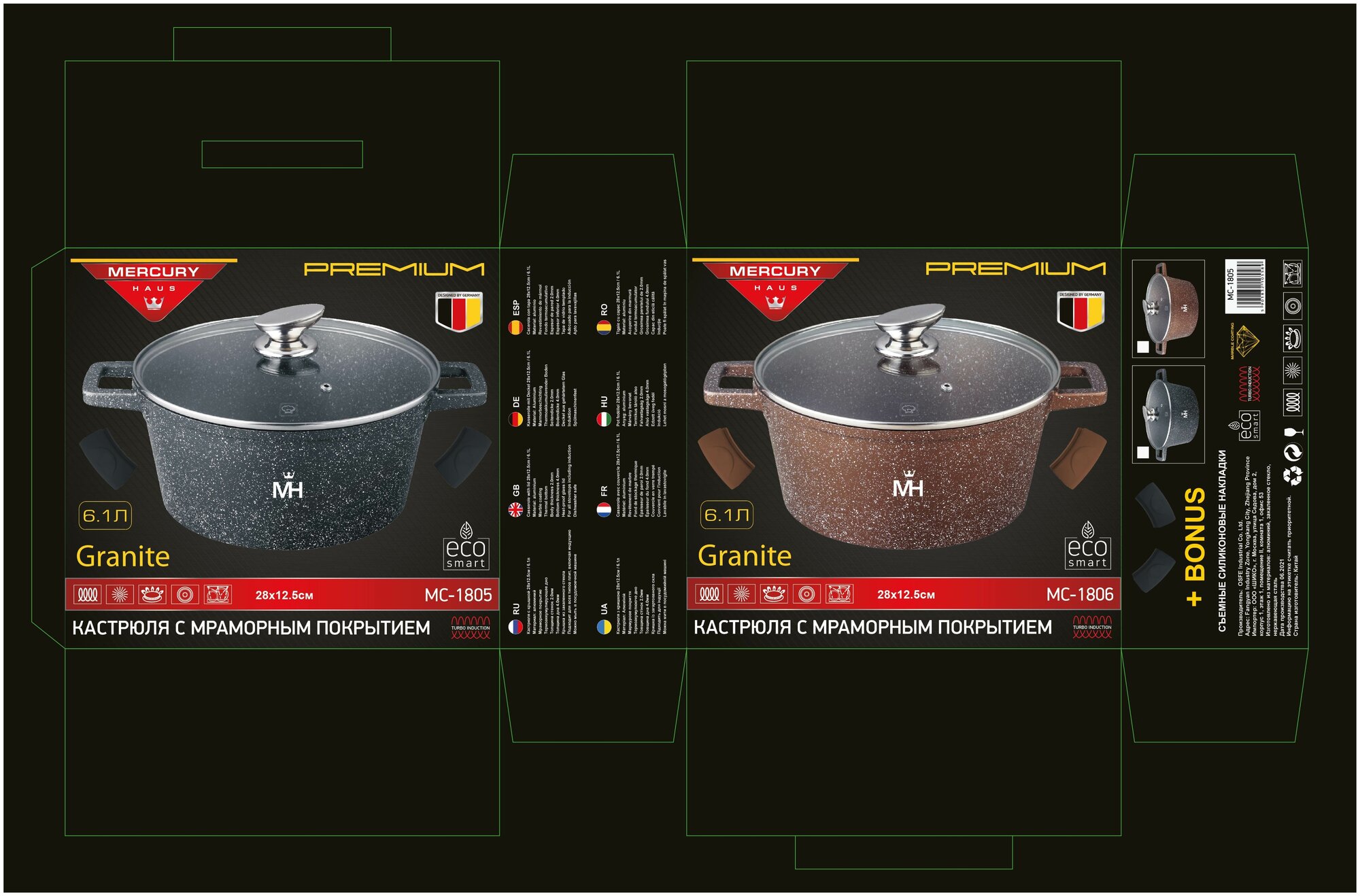 Кастрюля с крышкой "MercuryHaus", Granite (6) 6,1 л 28*12,5 см информация: