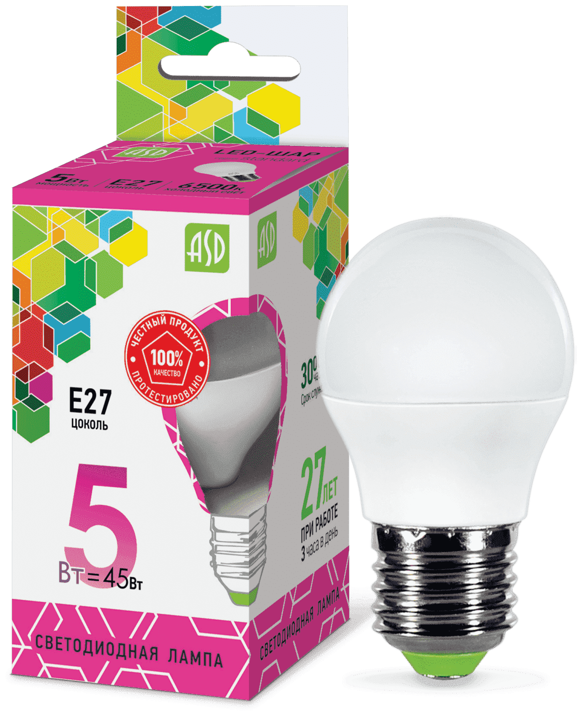 Отзывы на Лампа светодиодная LED-ШАР-standard 5Вт 230В Е27 6500К 450Лм ASD 4690612024561