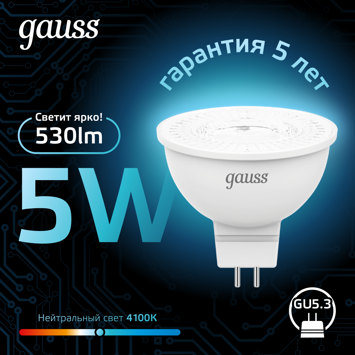 Отзывы на Лампочка светодиодная MR16 GU5.3 5W нейтр-белый свет 4100K упаковка 10 шт. Gauss Black