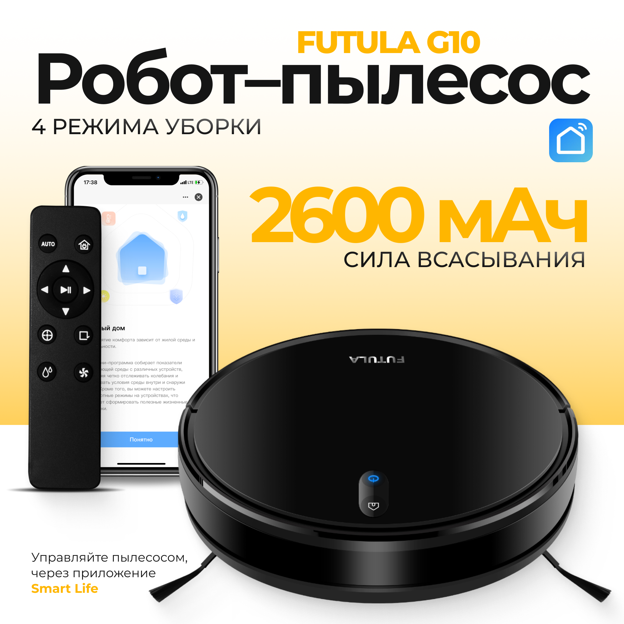 10 цен на Робот-пылесос Futula Robot Vacuum Cleaner and Mop G10 черный, сухая/влажная уборка, управление через смартфон