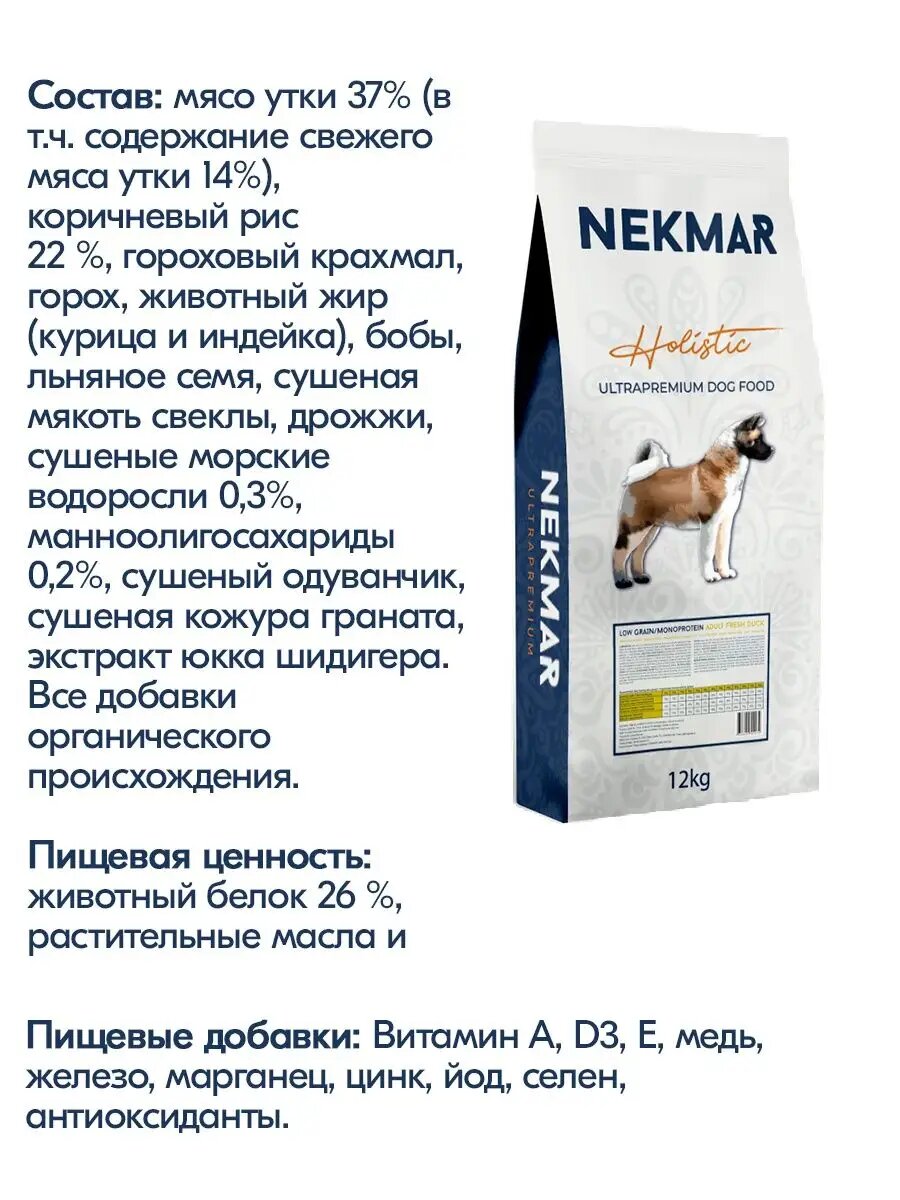 Сухой корм для собак Nekmar ADULT FRESH DUCK утка, монопротеин, 12кг, для всех пород, гипоаллергенный
