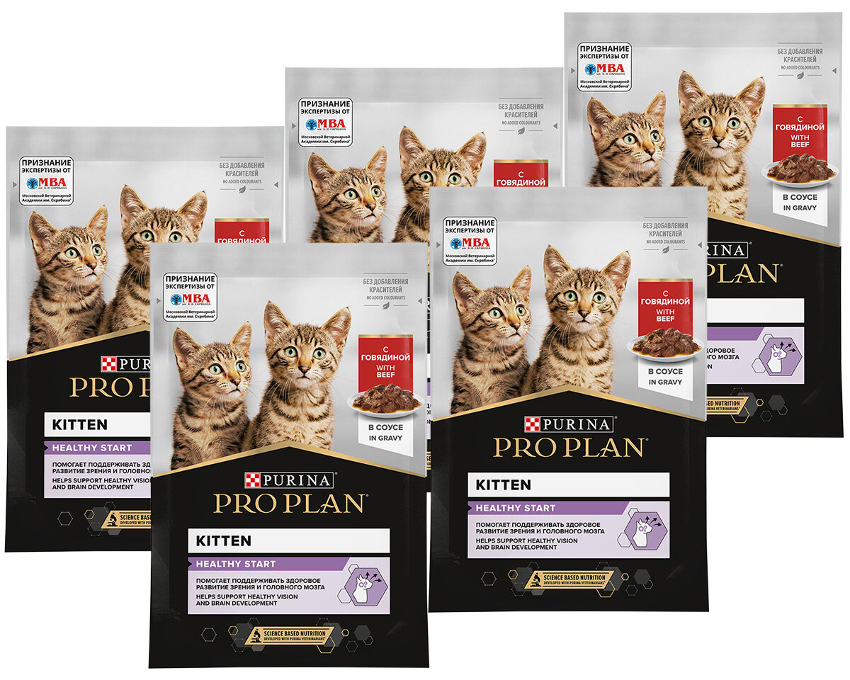 10 цен на PRO PLAN HEALTHY START для котят с говядиной в соусе 85 гр пауч 85 гр х 5 шт