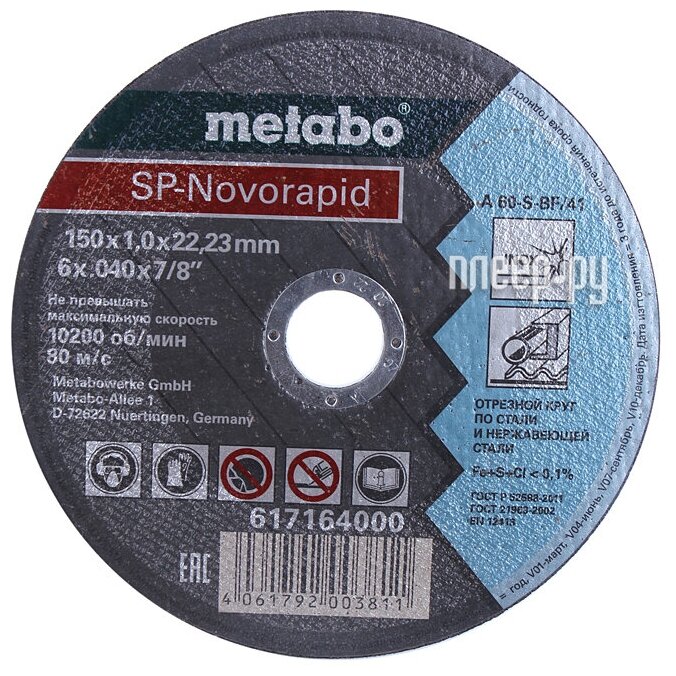 Диск Metabo SP-Novorapid150x1.0x22.23mm RU отрезной для нержавеющей стали 617164000 информация: