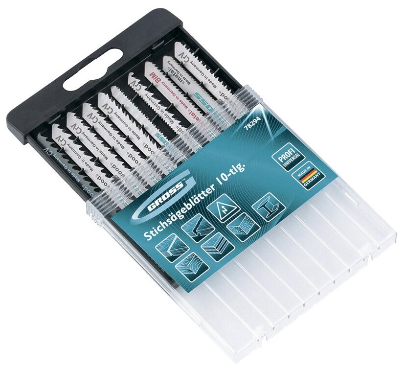 Набор полотен для электролобзика универсальный, 10шт., Profi, пластиковый кейс// Gross информация: