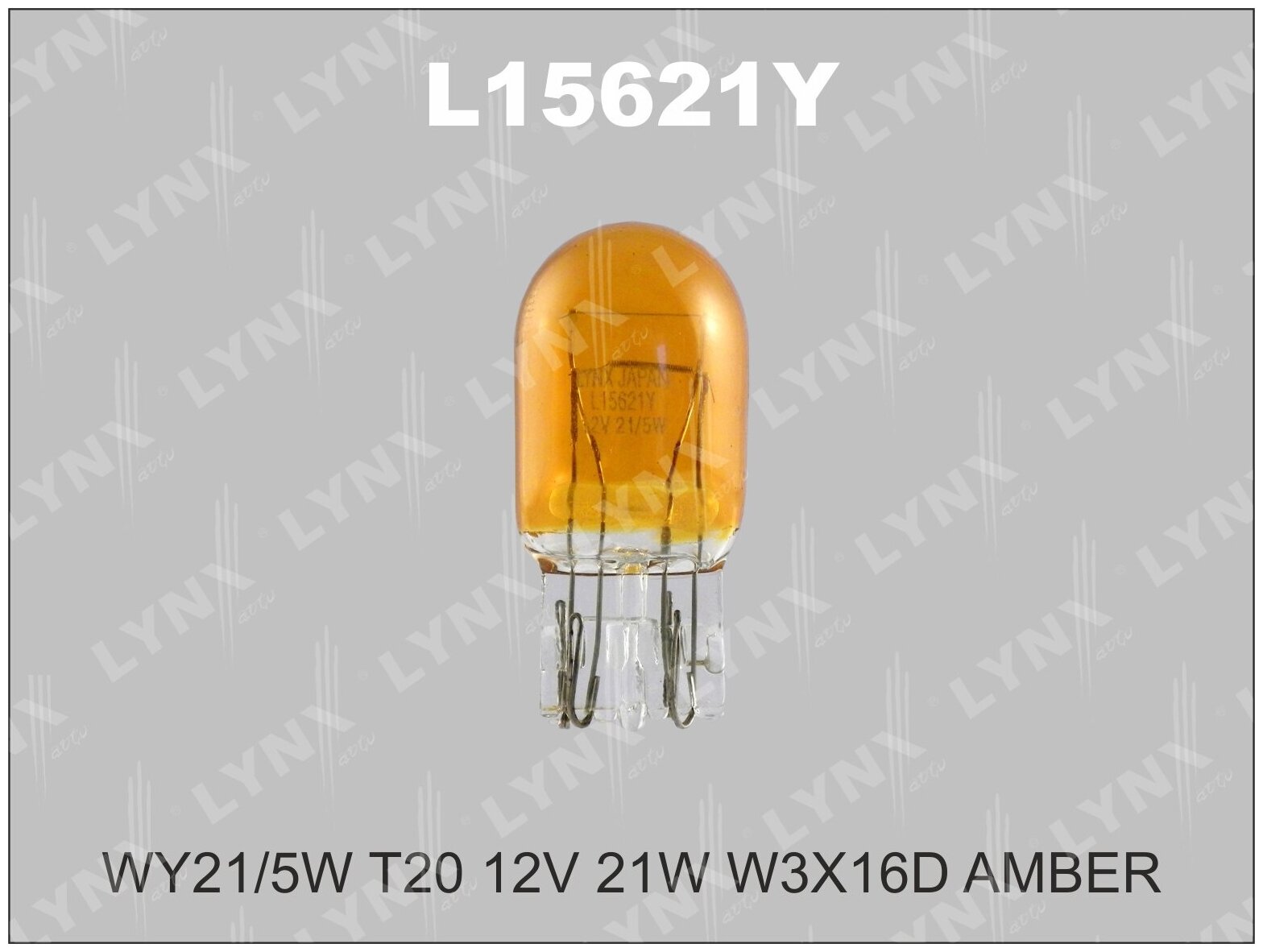 L15621Y LYNXAUTO Лампа накаливания WY21/5W T20 12V 21W W3X16D AMBER