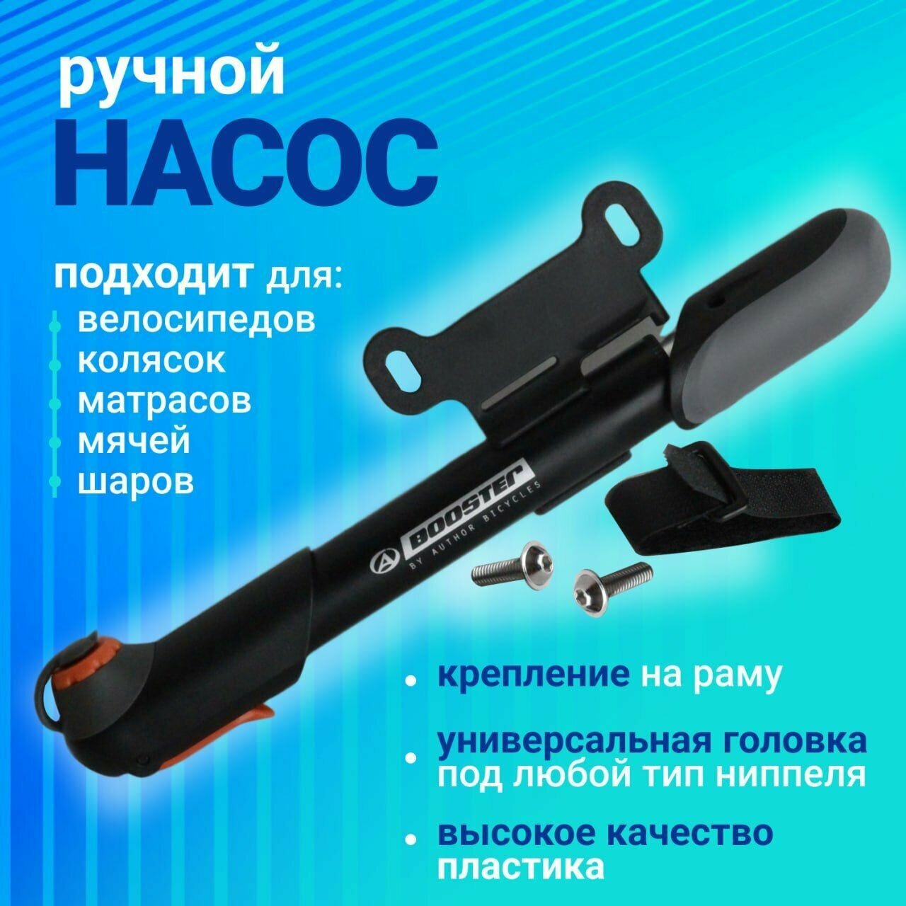 Отзывы на Насос велосипедный AUTHOR, алюминий, AAP Booster, универсальный, головка с колпачком, черный, 8-18101056