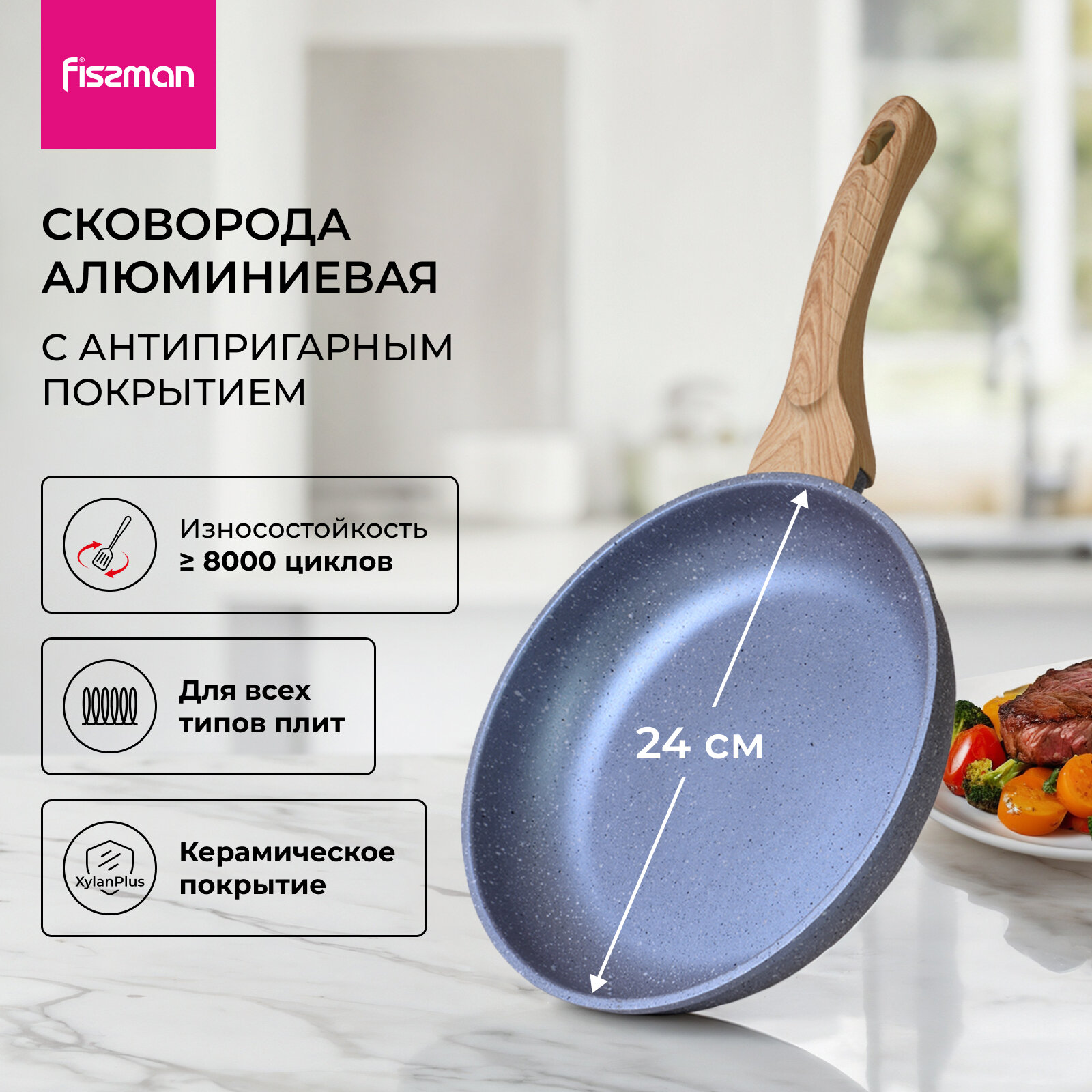10 цен на Сковорода антипригарная 24 см Fissman Natura, подходит для индукционных плит