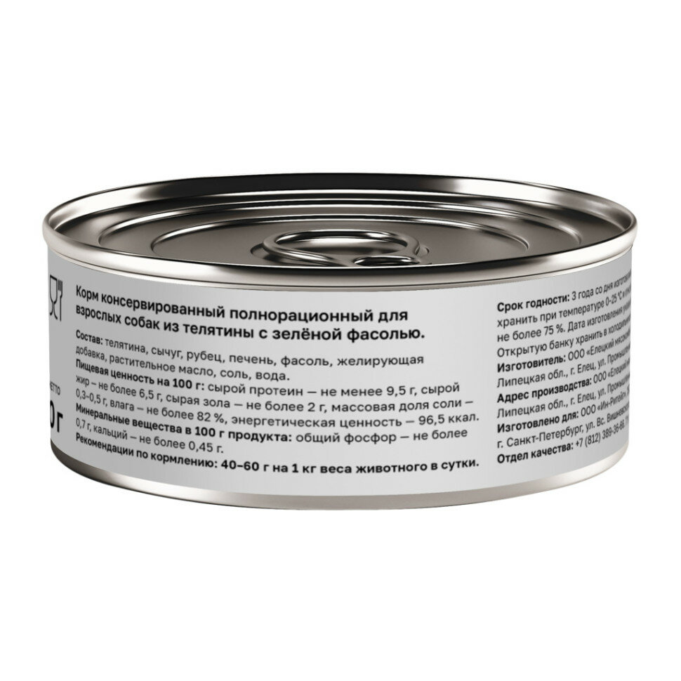 Консервы для собак Телятина с зеленой фасолью 0,1 кг
